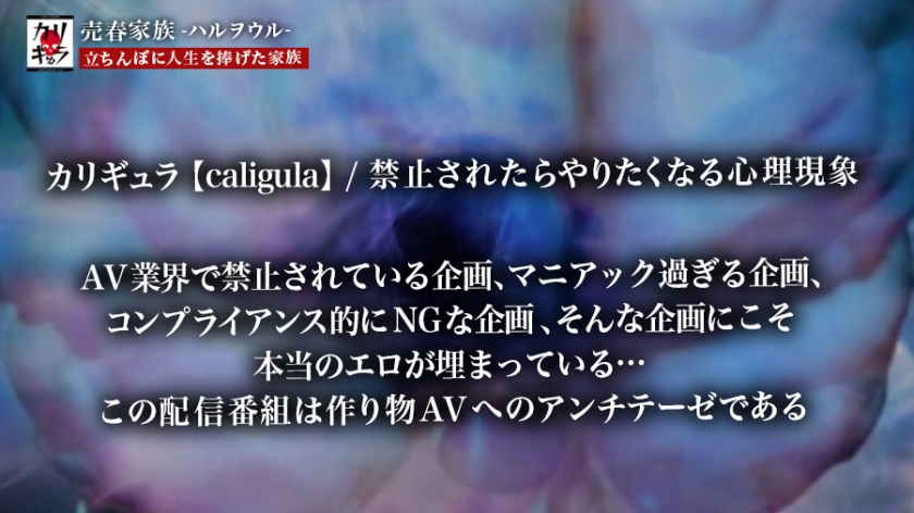 カリギゅラfile.03_売春家族-ハルヲウル-ニッポンにこんな家族が存在した【カリギュラ:禁止されるほど試したくなる心理現象】『今のAVは偽りだらけ』▼親子ドンブリを武器とする“立ちんぼ母娘”の実態▼売春スポット「立ちんぼ銀座」に潜入…禁断のシステムとは▼娘。エロ神様が憑依する「SEXだけが生きがい」▼母。男を魅了する悪魔の四十路▼母と娘が織り成すチ○コとアナル同時責め▼家族とは一体…??身体を売る事で繋がる家族の絆