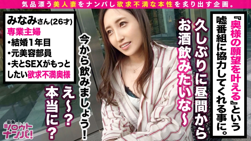 旦那の会社の目の前で…ゆる~い雰囲気の清楚なセレブ奥様が大胆に乱れ狂う!!可愛さと美しさを兼ね備えた圧倒的な美貌と白肌美乳、スレンダーながら揉みごたえのあるエロヒップ!!初めての玩具責め、大量潮吹き、ウォシュレットオナニーetc…淫美な身体を小刻みに震わせながら旦那では味わえない未知の快感・スリルに溺れ、イキ果てる!中出し3発、トドメの顔射フィニッシュ→まさかの淫乱本性開花で2本目チ○ポ奪取?!