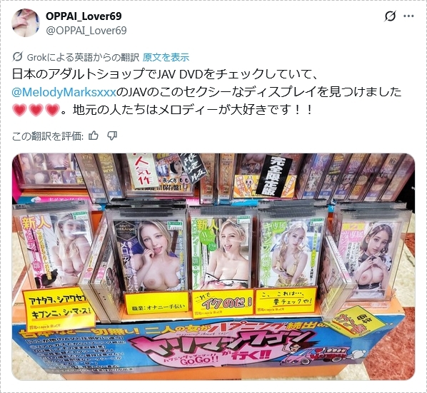 海外の方が日本のAVショップでメロディーさんを発見。