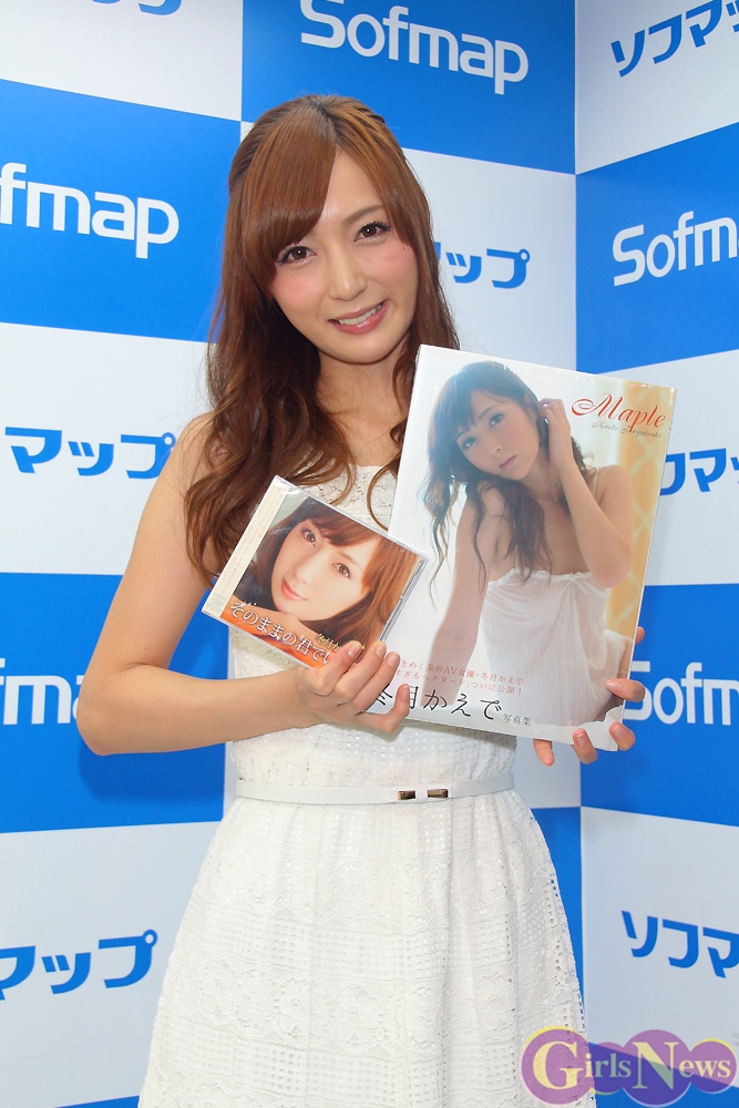 10月7日、セクシー女優、冬月かえでさんの歌手デビューシングル「そのままの君でいて」(ファーストミュージック)の発売を記念したイベントが秋葉原・ソフマップアミューズメント館で行われ、これに先立って記者会見で新曲のお披露目を行った。